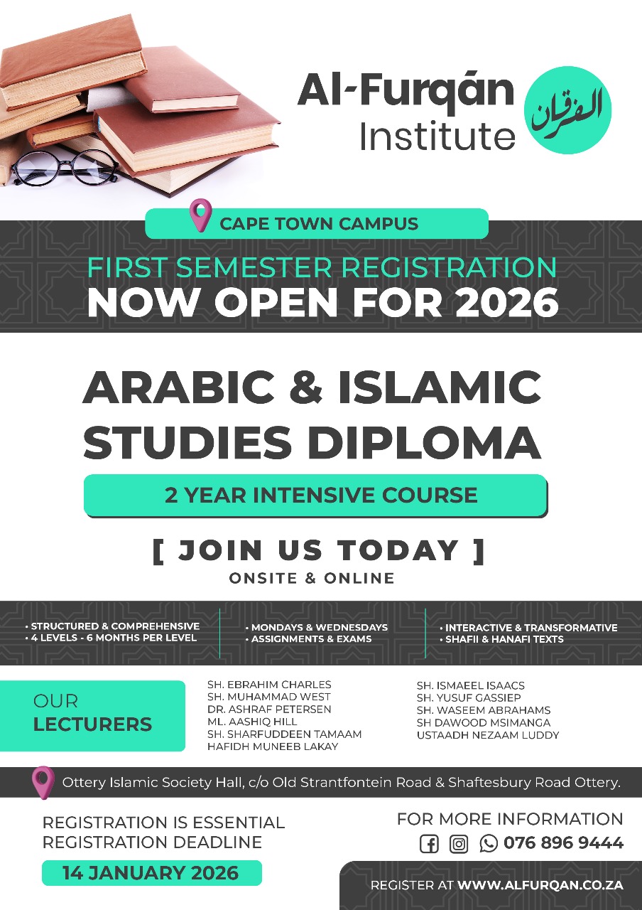 Al-Furqān Institute Cape Town: Your Gateway to Authentic Islamic Scholarship Al-Furqān Institute is delighted to announce that first semester registration for 2026 is now open at the Cape Town Campus.